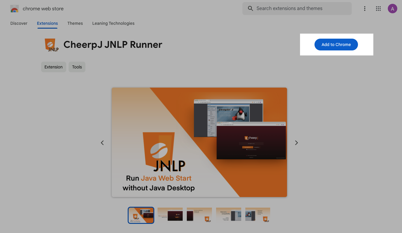 Install CheerpJ JNLP Runner for Chrome